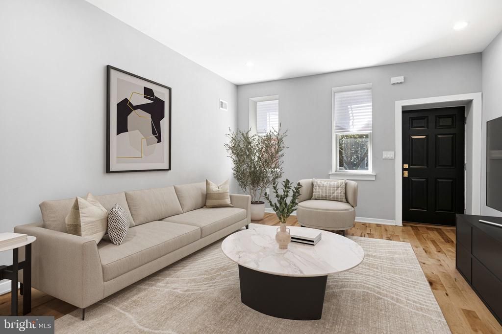 Welcome to 1329 Dickinson Street, a meticulously renovated 3-bedroom, 2.5-bath home offering over 2,800 square feet of luxurious living space in one of South Philadelphia’s most sought-after neighborhoods — just steps from the vibrant Passyunk Avenue corridor. From the moment you enter, you'll be captivated by the thoughtful design, high-end finishes, and seamless layout. The spacious open-concept main floor features wide-plank hardwood floors, recessed lighting, and a chef's kitchen equipped with quartz countertops, custom cabinetry, and top-of-the-line stainless steel appliances. Upstairs, you'll find three generously sized bedrooms, including a stunning primary suite with a feature wall of exposed brick, adding warmth and historic charm to the modern design. The suite also boasts a spa-like en suite bathroom and ample closet space. The fully finished basement adds valuable flexible living space — perfect for a media room, home gym, or office. Step outside to your private roof deck, ideal for entertaining or relaxing with sweeping views of the city skyline. All systems, mechanicals, and finishes are brand new — just move right in and enjoy! This is a rare opportunity to own a turnkey home just a short stroll from award-winning restaurants, cafes, boutiques, and parks in the heart of Passyunk Square. Schedule your private tour today and experience South Philly living at its finest.