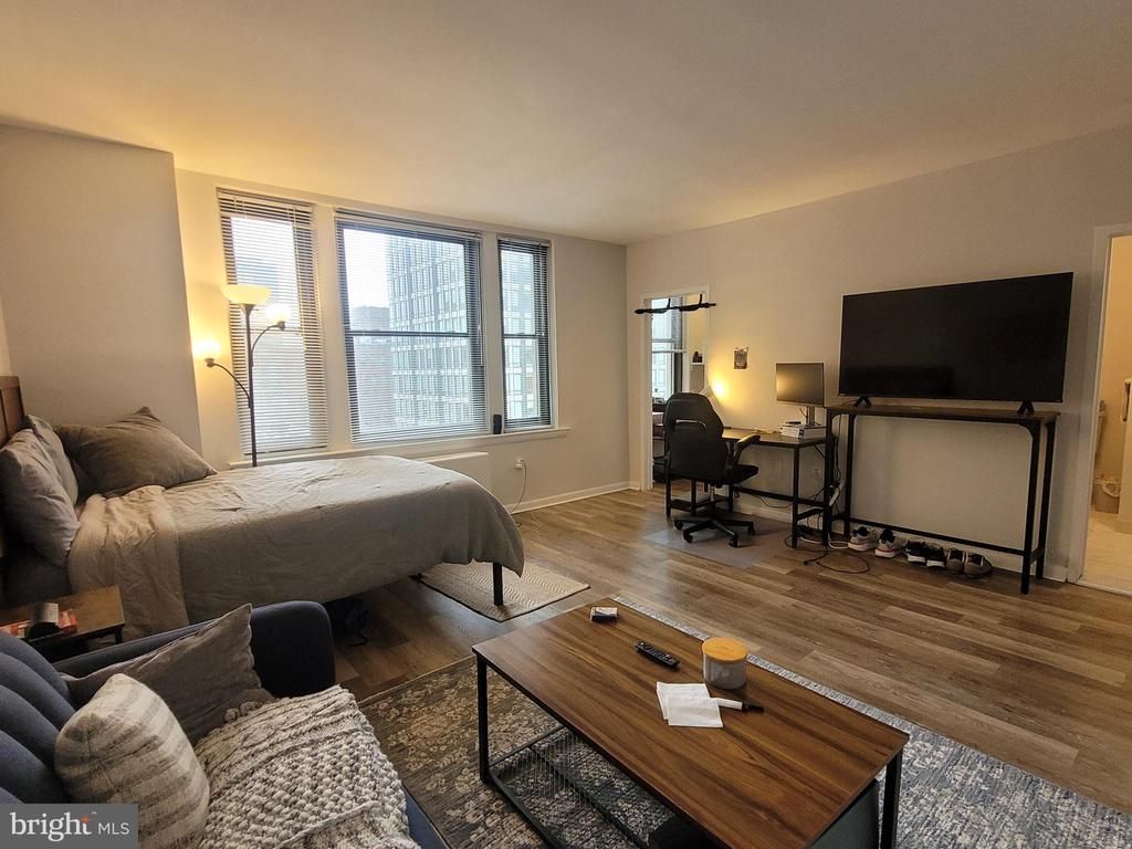 Updated studio residence at The Wellington located on Rittenhouse Square. There is vinyl flooring throughout and an updated bathroom with sleek vanity, tub shower, and upgraded tile floor. The living area has large windows beaming with natural light and two closets perfect for storage space. Adjacent to the living area is a fully equipped kitchen. The Wellington is a pre-war apartment building located on Rittenhouse Square offering a 24 hour doorman, on-site management, and access to a nearby fitness center at 1845 Walnut.