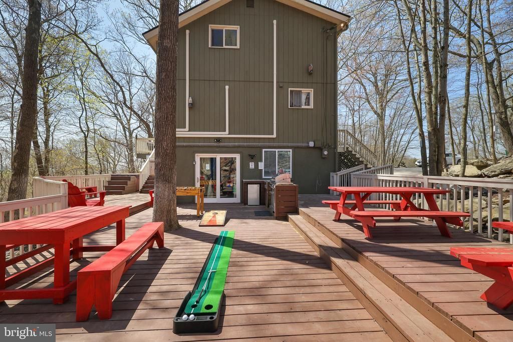 Spacious and versatile 5-bedroom, 2-bathroom rental located in the desirable Saw Creek Estates community! This well-maintained home offers the perfect blend of comfort, functionality, and year-round enjoyment. With a newer roof installed in 2020, the property features an outdoor hot tub, a generous deck ideal for entertaining, shed storage, an outdoor cooking station, and a large screened porch for relaxing in any season. Inside, enjoy the convenience of an efficient split AC/heating system, two kitchens for added flexibility, an expansive family room, and a dedicated game room area--perfect for gatherings or extended living arrangements. The primary bedroom boasts its own private balcony, creating a peaceful retreat, while the wood-burning fireplace and exposed beam ceilings add warmth and rustic charm throughout the home. Stainless steel appliances complete the modern touches. Nestled in a vibrant four-season community, residents enjoy access to an impressive array of amenities including indoor and outdoor tennis courts, a private beach area, fishing spots, boat rentals, racquetball, basketball courts, baseball fields, playgrounds, and seasonal ice skating. Don't miss this incredible rental opportunity--schedule your private viewing today and start making unforgettable memories!