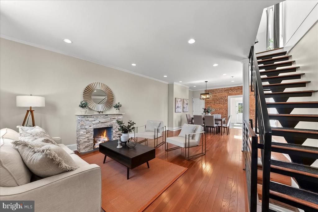 Welcome to 3626 Calumet Street, an ultra-charming, sun-drenched end-of-row home in the heart of East Falls offering rare three-sided exposure, beautiful skyline views, and exceptional indoor-outdoor living. Freshly painted throughout in neutral tones and truly move-in ready, this home combines classic Philadelphia character with thoughtful modern updates. Step through the front door into a bright and inviting open-concept living and dining space featuring gleaming hardwood floors, exposed brick walls, recessed lighting, crown molding, and tall oversized windows that flood the home with natural light. A cozy gas fireplace anchors the living area while the seamless layout creates the perfect setting for both intimate gatherings and larger entertaining. The updated kitchen sits just beyond, designed for both everyday living and hosting. It features abundant cabinetry, quartz countertops, a glass tile backsplash, and stainless steel appliances including a five-burner gas range, French-door refrigerator with ice and water, built-in microwave, dishwasher, and deep stainless sink with disposal. Just off the kitchen is first-floor laundry and direct access to the backyard—creating effortless indoor-outdoor flow. Step outside to a fenced backyard oasis. A charming covered porch overlooks lush garden beds filled with native plantings, beautiful hardscaping, and a fully equipped outdoor kitchen with built-in stainless grill, granite countertops, and seating—perfect for al fresco dining, summer BBQs, and entertaining under the stars. Ascending the beautiful open wrought iron staircase, the home continues to impress with three bright bedrooms and a beautifully renovated hall bath featuring floor-to-ceiling porcelain tile, a Carrara marble vanity, and a skylight that fills the space with natural light throughout the day. The spacious owner’s suite is a true retreat with exposed brick, outfitted closets, and windows on two exposures offering spectacular sunset views from the bedroom alcove. Two additional bedrooms complete the level, including one with access to a private rear deck where you can enjoy breathtaking sunrises and distant views of the Philadelphia skyline. As an end-of-row with ideal north/south exposure, the home is filled with natural light from morning to evening—often eliminating the need for lights during the day. The fully finished walk-out lower level offers incredible flexibility with a full bath and generous storage. Ideal as a family room, guest suite, home office, or potential fourth bedroom, it also provides convenient street access. Located just one block from the East Falls SEPTA Regional Rail station, commuting into Center City is incredibly convenient. The home is also moments from neighborhood favorites including Fiorino, Frank’s Pizza, and LeBus bakery, as well as parks, green spaces, the Falls of Schuylkill Library, and the beloved Ravenhill sledding hill. With three outdoor spaces, incredible natural light, designer finishes, multi-zone high-efficiency HVAC, and one of the most charming garden settings in East Falls, 3626 Calumet Street offers a rare opportunity to enjoy vibrant city living with a true neighborhood feel.